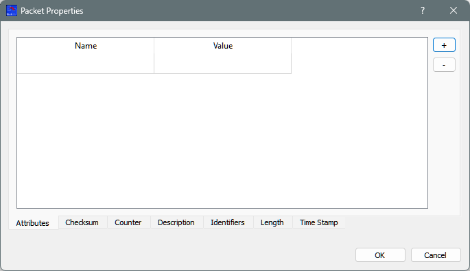 The Packet Properties dialog is shown in Figure 58. The Packet Properties dialog provides the capability to define one or more properties in a packet. For details on Packet Properties please reference the TReK Concepts document. Certain tabs contain a checkbox to indicate if the Packet Properties should be set in the Packet. If the checkbox is set, all the data entered on the tab will be validated and the attribute will be added to the Packet.